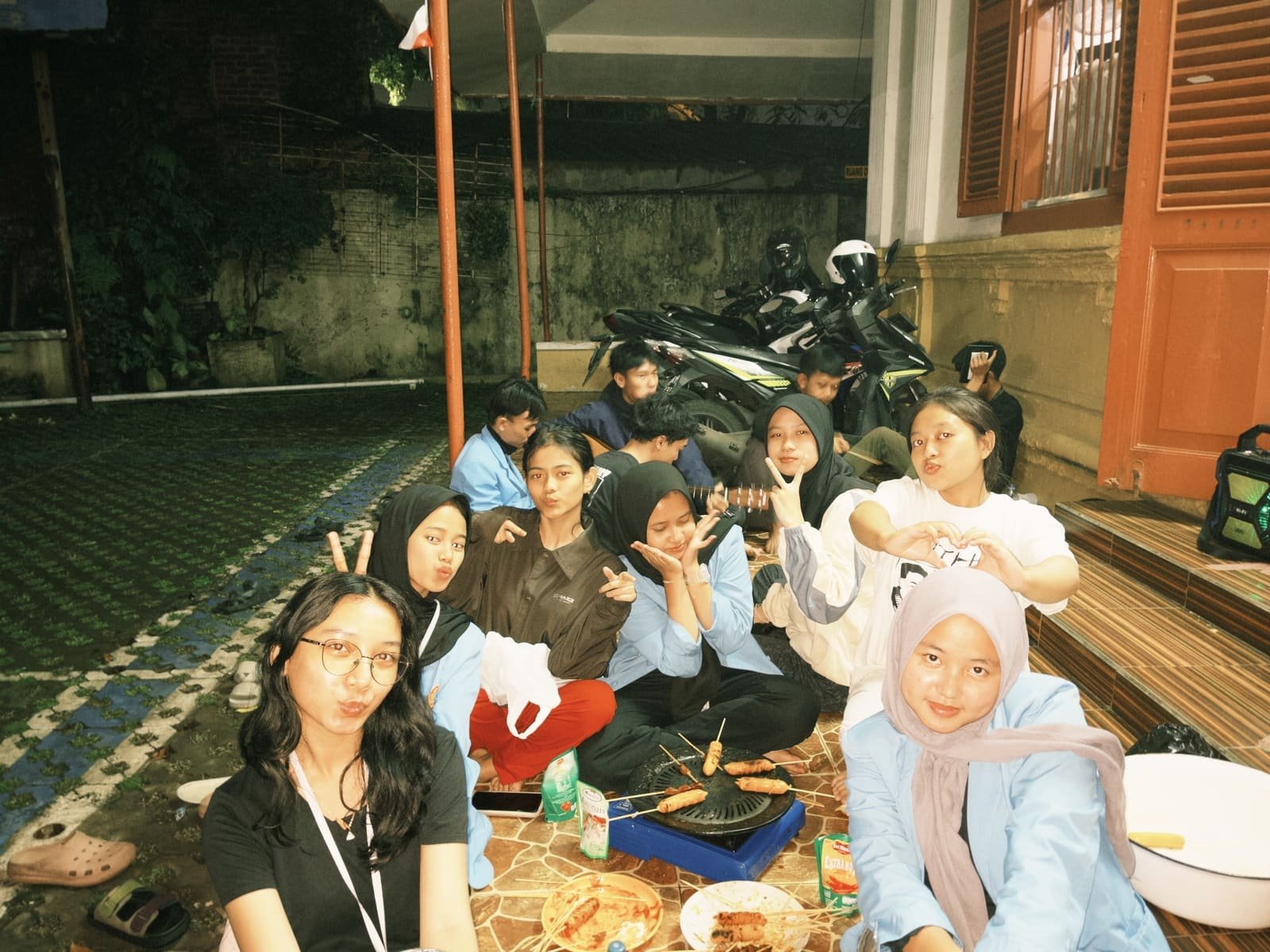 Menjelang malam, peserta bersiap untuk kegiatan “Babakaran dan Oskrab” (Osis Akrab) — sebuah acara santai di lapangan yang diisi dengan makan bersama dan refleksi ringan untuk mempererat hubungan antaranggota OSIS. Suasana keakraban ini menjadi momen penting dalam membangun rasa kekeluargaan.